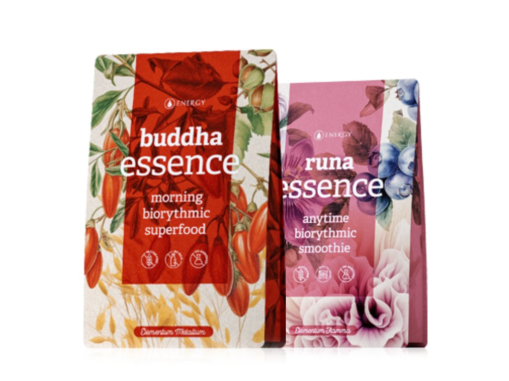 Runa essence je čistě přírodní, harmonizační a biorytmické smoothie sestavené podle principů tradiční čínské medicíny (TČM) podporující psychiku, povzbuzení životní radosti a mladistvý vzhled. Respektuje nutriční potřeby i klíčové biorytmy organismu a našemu tělu dodává co nejšetrněji připravené a vzájemně sladěné esenciální ingredience. Všechny suroviny jsou pečlivě vybrané s důrazem na kvalitu i způsob zpracování, kdy byla zachována jejich ryzí čistota a živá podstata. Smoothie je naprosto bez chemie, aditiv a konzervantů. Neobsahuje lepek ani přidaný cukr.