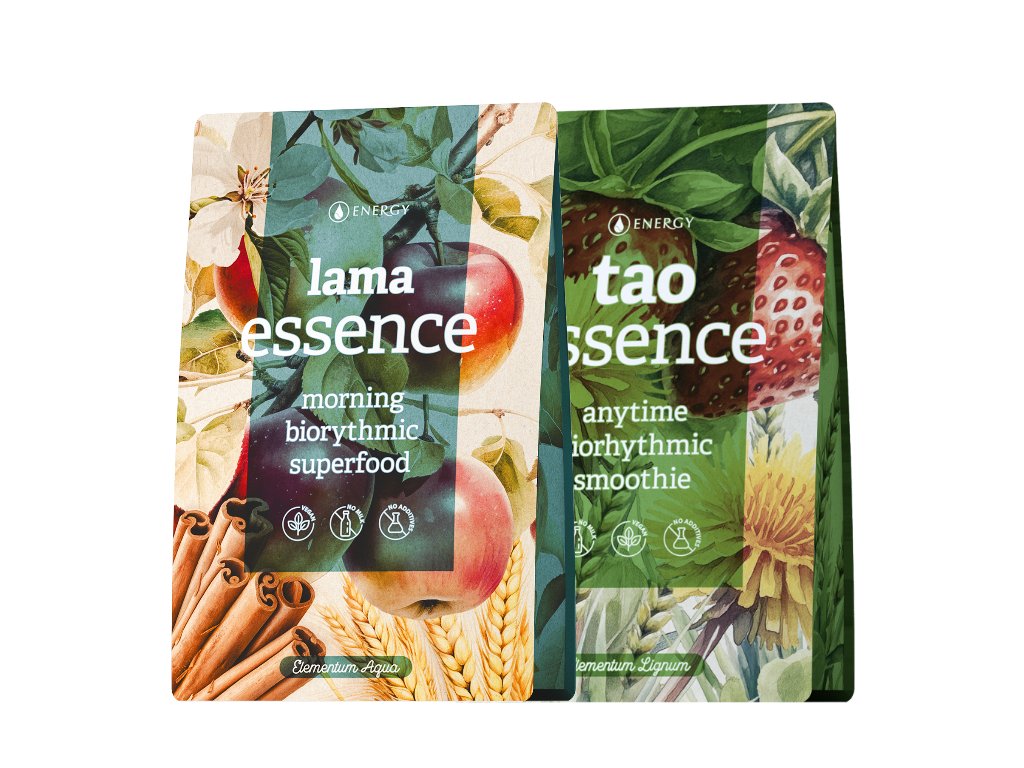 Tao essence je čistě přírodní, harmonizační a biorytmické smoothie sestavené podle principů tradiční čínské medicíny (TČM) podporující očistu organismu, a regeneraci jater i žlučníku. Harmonizuje trávicí orgány a podporuje krvetvorbu. Respektuje nutriční potřeby i klíčové biorytmy organismu a našemu tělu dodává co nejšetrněji připravené a vzájemně sladěné esenciální ingredience. Všechny suroviny jsou pečlivě vybrané s důrazem na kvalitu i způsob zpracování, kdy byla zachována jejich ryzí čistota a živá podstata. Smoothie je naprosto bez chemie, aditiv a konzervantů.