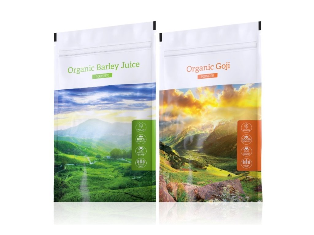 Organic Barley Juice powder + Organic Goji powder (klubová cena) expirace Organic Barley Juice 15.06.22